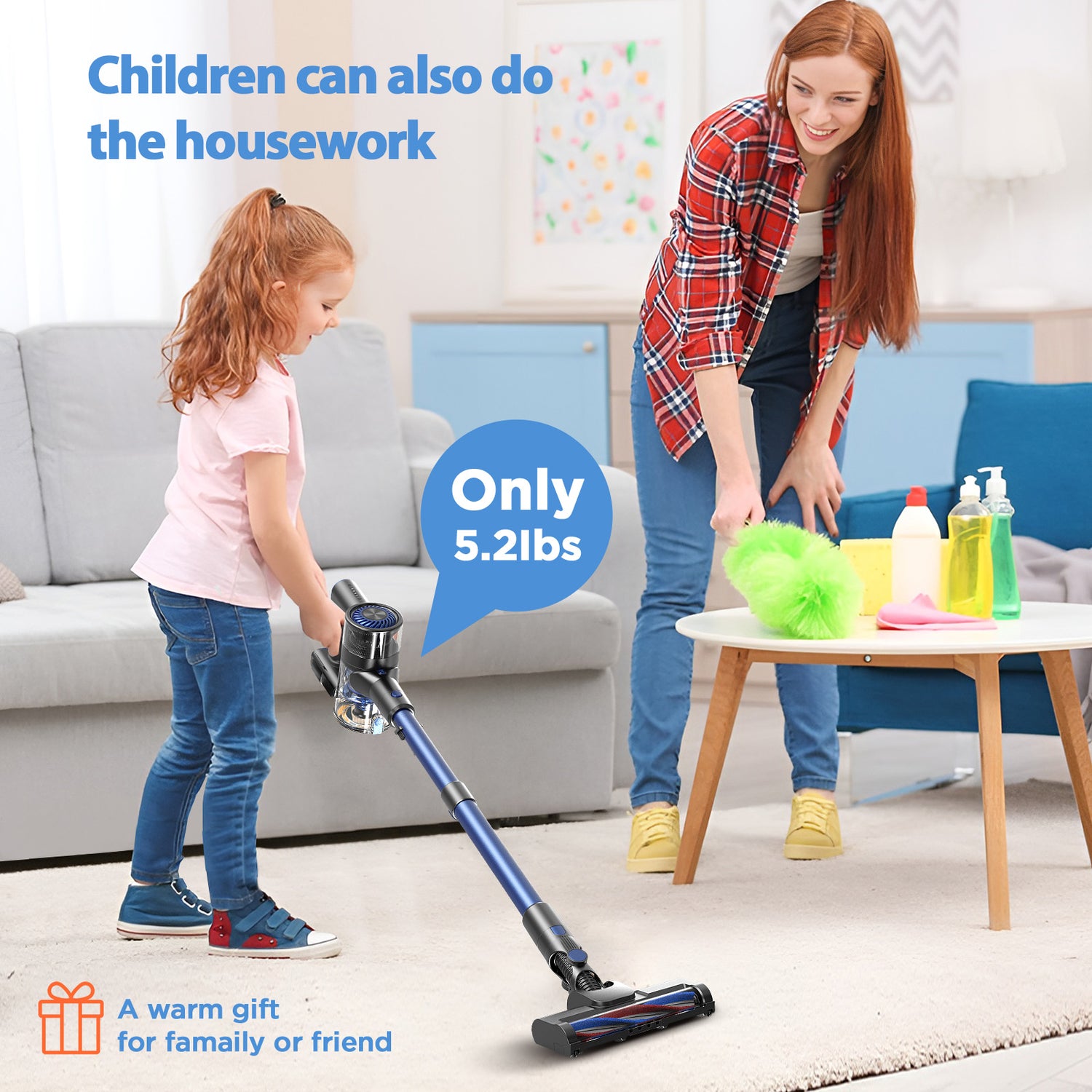 Bossdan Cordless Vacuum, Lightweight Stick Vacuum Cleaner for Hardwood Floor, Quiet, Blue, New